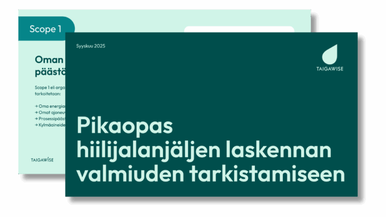 Hiilijalanjälkilaskennan aloittamiselle ei ole yhtä oikeaa ajankohtaa. Jokainen yritys voi hyötyä siitä jo nyt – riippumatta tilikauden vaiheesta, sesongista tai toimintavuoden päättymisestä. Mitä aikaisemmin aloitat, sitä helpompi on saada päästöjen laskeminen osaksi liiketoimintaa, raportointia ja tukemaan päätöksentekoa.